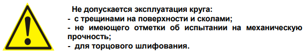 2.8 Не допускается использовать круги на операциях, запрещенных знаками безопасности, превышением скорости указанными на этикетке.